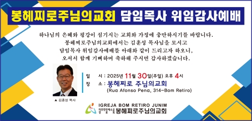 ¹ÌÁÖÇÑÀο¹¼ö±³Àå·Îȸ ºê¶óÁú³ëȸ´Â Áö³­ 11¿ù 3ÀÏ(¿ù) ¿ÀÀü 10½Ã¿¡ ºÀÇìÂî·ÎÁÖ´ÔÀDZ³È¸¿¡¼­ Á¦38-1ȸ Àӽóëȸ¸¦ °³ÃÖÇÏ¿´´Ù. ºÎ³ëȸÀå ÀÌÁ¾¿ø ¸ñ»ç(ºê¶óÁú±¤¸í±³È¸ ¡¦
