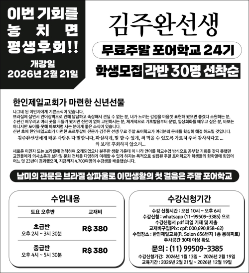 »õ·Î¿î À̹ÎÀÚ ¶Ç´Â ºê¶óÁú¿¡ Á¤ÂøÇÏ¿© ¿À·¡µÇ¾úÀ¸³ª ºÐÁÖÇÑ »ýȰ °¡¿îµ¥ ÀÌ ³ª¶ó ¾ð¾î¸¦ Çб³ ¼ö¾÷ ¹æ½ÄÀ¸·Î °øºÎÇÒ ±âȸ¸¦ ¸ÂÁö ¸øÇß´ø ±³¹Îµé¿¡°Ô ÀÇ»ç¼ÒÅë°ú ºê¶óÁú ¹®È Àüü¸¦ ´Ù¾çÇÏ°Ô ÀÌÇØÇÒ ¼ö ÀÖ°Ô ÇÏÀÚ´Â ¸ñÀûÀ¸·Î ¼³¸³µÈ ÁÖ¸» Æ÷¾îÇб³°¡ ÇлýµéÀÇ ÇâÇп¿¡ ÈûÀÔ¾î ¾î´Àµ¡ 23³âÀÌ °æ°úÇßÀ¸¸ç Áö±Ý±îÁö 4,700¿©¸íÀÇ ¼ö°»ýÀ» ¹èÃâÇß½À´Ï´Ù.