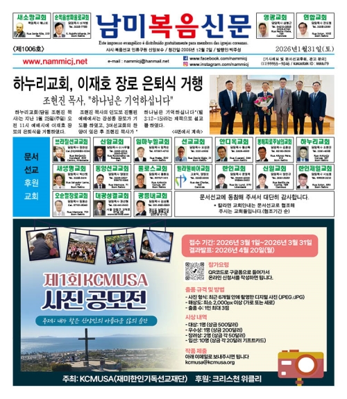 • ³²¹Ìº¹À½½Å¹®(http://nammicj.net) | â°£ÀÏ : 2005³â 12¿ù 2ÀÏ | ¹ßÇàÀÎ : ¹ÚÁÖ¼º
