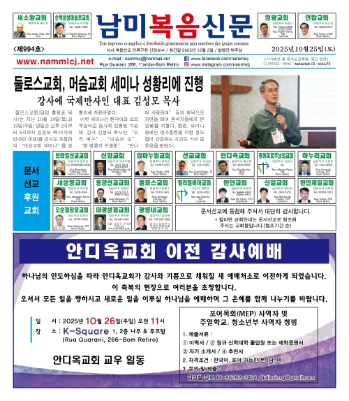 "³²¹Ìº¹À½½Å¹®" ºê¶óÁú À¯ÀÏ ÇÑÀÎ ±âµ¶±³ ½Å¹®(nammicj.net) - copyright ¨Ï ³²¹Ìº¹À½½Å¹®. ¹«´ÜÀüÀç & Àç¹èÆ÷ ±ÝÁö