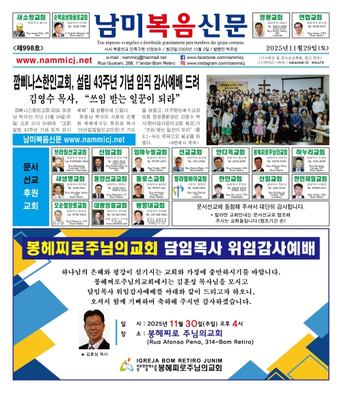 "³²¹Ìº¹À½½Å¹®" ºê¶óÁú À¯ÀÏ ÇÑÀÎ ±âµ¶±³ ½Å¹®(nammicj.net) - copyright ¨Ï ³²¹Ìº¹À½½Å¹®. ¹«´ÜÀüÀç & Àç¹èÆ÷ ±ÝÁö